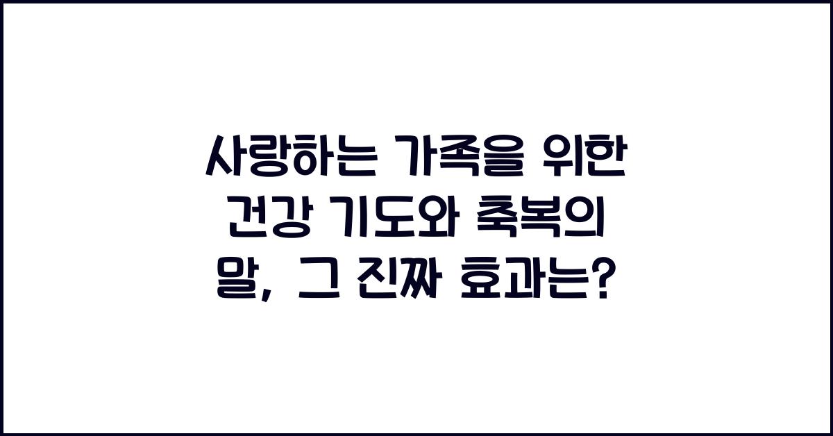 사랑하는 가족의 건강을 위한 기도가족의 건강은 모든 이에게 최우선 사항입니다. 우리가 사랑하는 가족을 위해 중요한 것은, 그들의 생활 속에서 건강한 마음과 몸을 유지할 수 있도록 최선을 다하는 것입니다. 사랑하는 가족을 위한 건강 기도와 축복의 말은 단순히 말로 끝나는 것이 아니라, 그 마음을 담아 외치고 실천하는 것이기에 더욱 중요합니다.가족이 아프지 않고 건강하게 지낼 수 있도록 기도하는 일은 매우 의미 있는 행동입니다. 매일 아침 눈을 뜨고 첫 번째로 가족의 건강을 기원하는 기도를 올려보세요. 이러한 일상이 쌓이면 가족의 마음에도 긍정적인 에너지가 쏟아질 것입니다. 지극한 마음으로 “사랑하는 가족을 위한 건강 기도와 축복의 말”을 외치는 시간을 가질 때, 우리 가족에게 축복이 가득할 것이라는 믿음을..