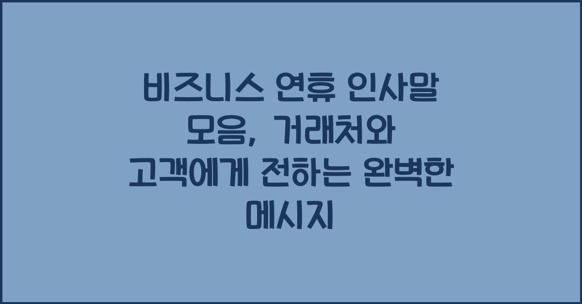 비즈니스 연휴 인사말의 중요성비즈니스를 운영하다 보면 연휴 시즌은 특별한 의미를 지닙니다. 연휴는 가족과의 시간을 보낼 뿐만 아니라, 그동안의 성과를 돌아보고 새로운 계획을 세울 수 있는 기회이기도 합니다. 고객이나 거래처에 보내는 연휴 인사말은 그들과의 관계를 한층 돈독히 하고, 신뢰를 쌓는 기회로 활용될 수 있습니다. 여기서 우리는 비즈니스 연휴 인사말 모음 거래처와 고객을 위한 완벽한 메시지를 알아보려고 합니다. 인사말이 단순한 의례를 넘어 서로의 마음을 확인하는 계기가 되기를 바랍니다.우리가 보내는 인사말은 단순히 문자로 끝나는 것이 아닙니다. 이것은 상대에게 따뜻한 감정을 전하는 방법입니다. 고객과 거래처에게 보내는 연휴 인사말은 그들의 노고에 감사하고, 관계를 강화하는 좋은 콘텐츠가 될 수 있..
