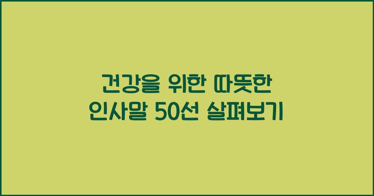 일상에서 자주 사용하는 인사말들 속에서 누군가의 마음을 움직이고, 건강을 챙기려는 선한 행동으로 이어질 수 있습니다. 우리 삶에서 간과하기 쉬운 따뜻한 인사말이 누군가에게 큰 위로가 될 수 있다는 것을 항상 마음에 새기고, 이를 적극적으로 활용하는 것이 중요합니다. '건강을 위한 따뜻한 인사말 50선 – 마음까지 편안해지는 문구'를 통해 사랑과 배려의 마음을 항상 담아 전합니다.
