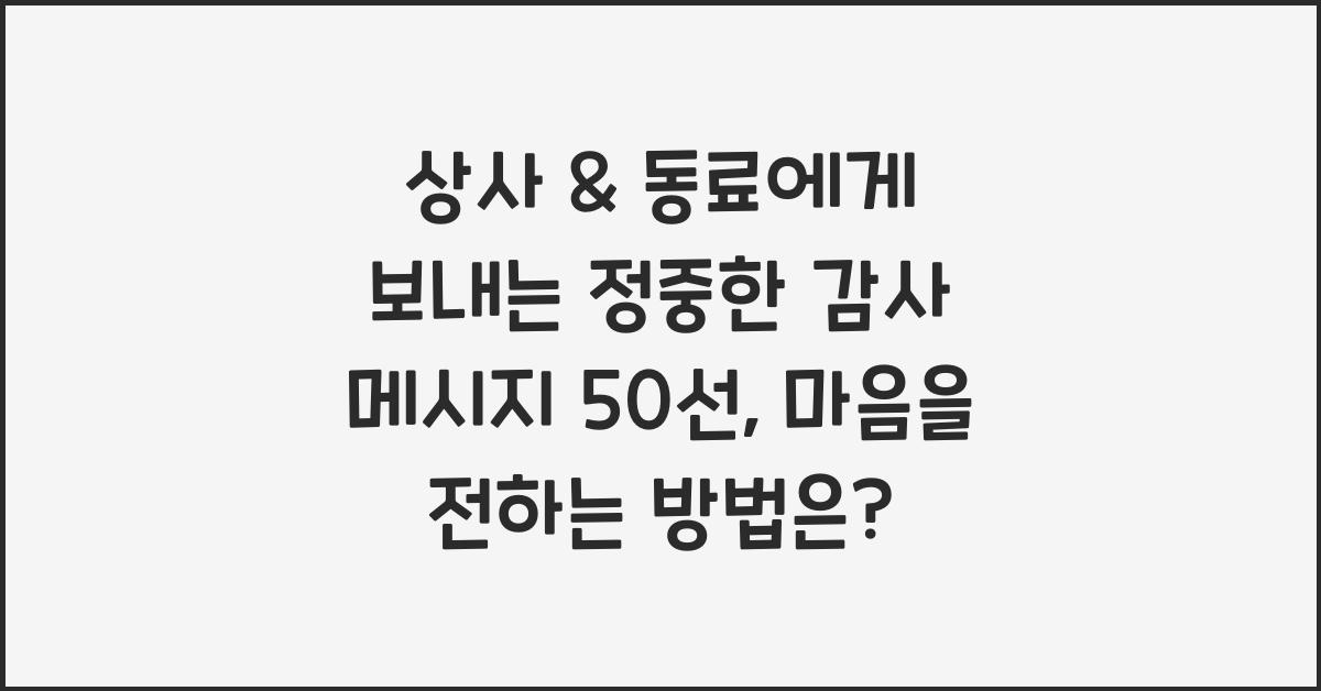 상사나 동료에게 감사의 마음을 전하는 것은 직장 내 긍정적인 분위기를 만드는 중요한 요소입니다. '상사 & 동료에게 보내는 정중한 감사 메시지 50선'을 활용하여, 감사의 마음을 구체적으로 표현하세요. 서로에게 긍정적인 에너지를 주며, 좋은 관계를 형성하시길 바랍니다.